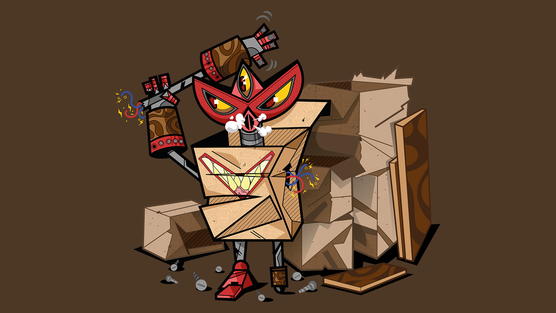 Desafio: Criar 4 monstros robóticos no conceito de chefão final de fase de um videogame dos anos 90. Esses chefões representam o desafio final para os alunos do sétimo ano do ensino fundamental.